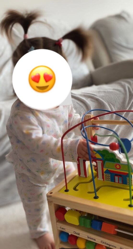 Suntem foarte incantate de cubul de activități atât eu cât și fetita mea. Chiar dacă are doar 9 luni (recomandarea producătorului este de 12+) petrece mult timp jucându-se cu el. Îl recomand sincer!