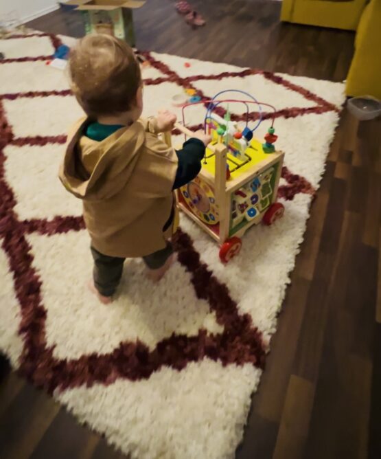 Cubul este lucrat bine si foarte usor de montat. Este mai micut decat ma asteptam insa bebe este atras sa se joace cu el. Ne place 🥰 (bebe 11 luni – momentan doar se joaca cu lateralele – nu il impinge prin casa)